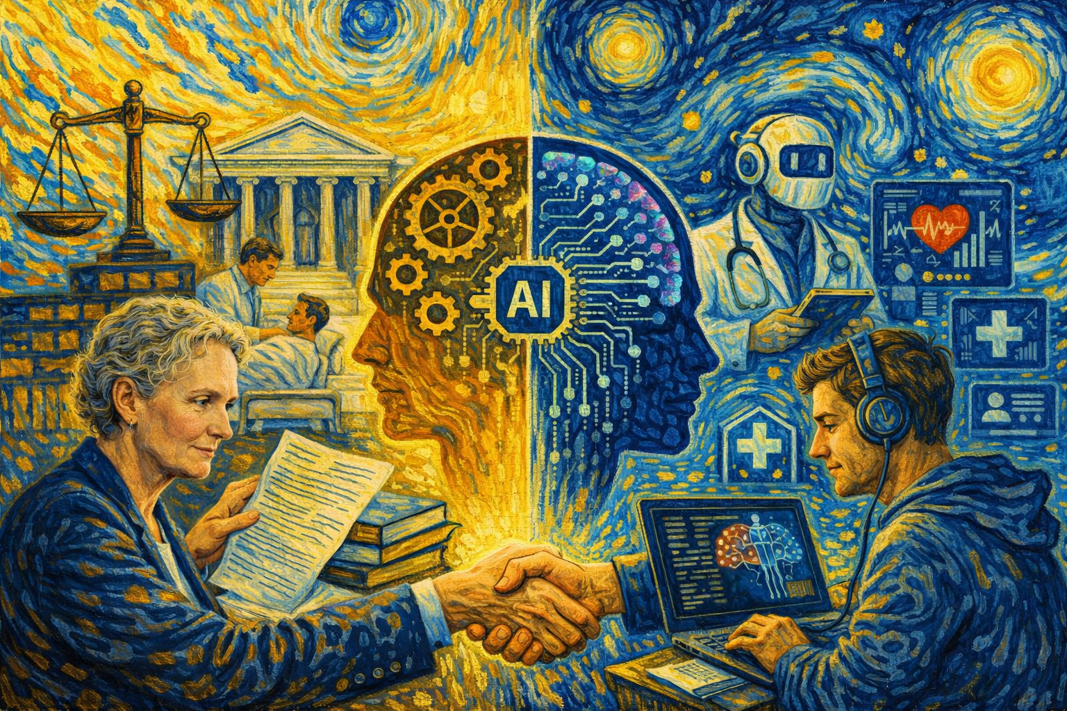 AI verkar vara vår tids gemensamma projekt över generationsgränserna, så även inom juridiken. Inom offentlig sektor och hälso- och sjukvård innebär det förändringar som påverkar både professionen, utbildningen och våra rättsliga normer.